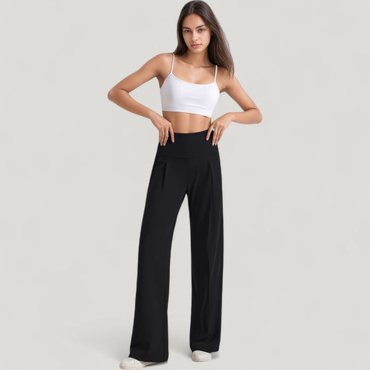 Anna-Kaci Active Women's High Waist Wide Leg Pants with Front Pleat Detail