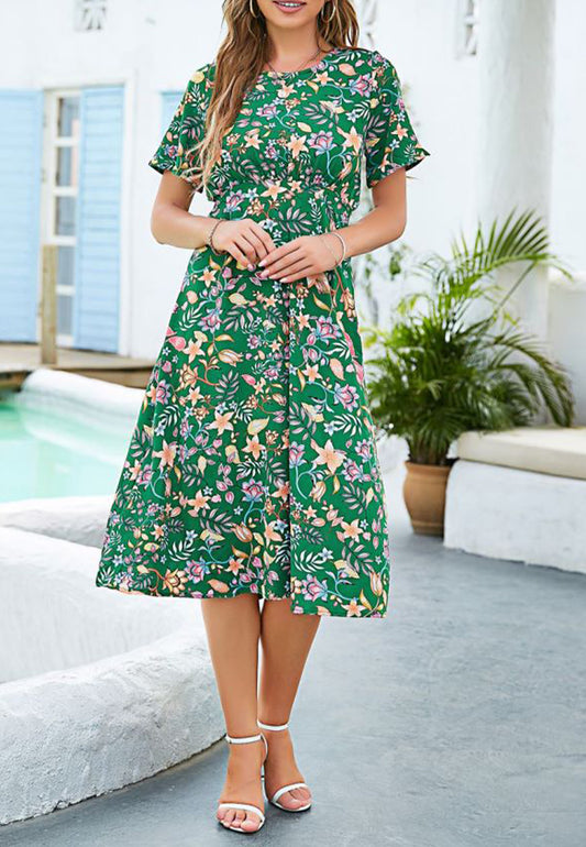 Vestido de leopardo con detalle de volante y escote pronunciado