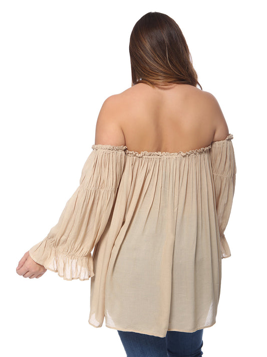 Blusa de color liso con volantes y botones en la parte delantera, talla grande