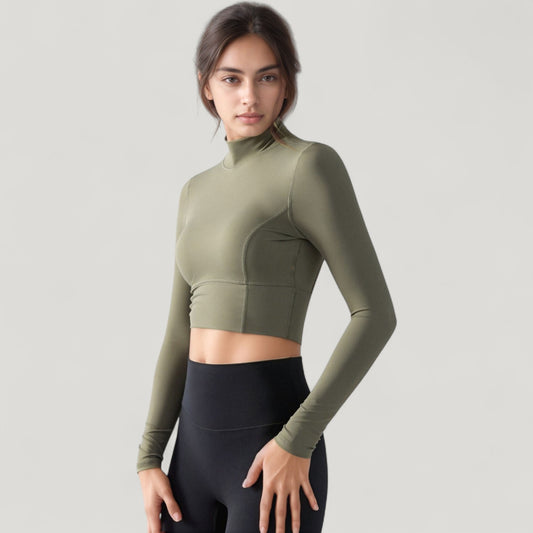 Anna-Kaci Active Women's Long Sleeve Crop Top with High Neck and Open Back Design