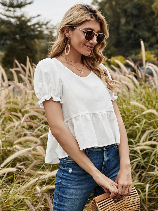 Minivestido de encaje con espalda abierta y mangas abullonadas
