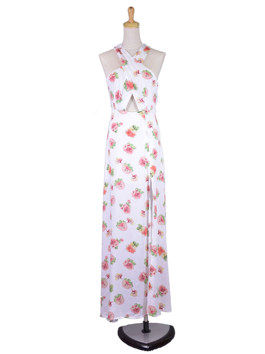 Vestido largo de gasa con escote cruzado y estampado floral de ReNamed para primavera