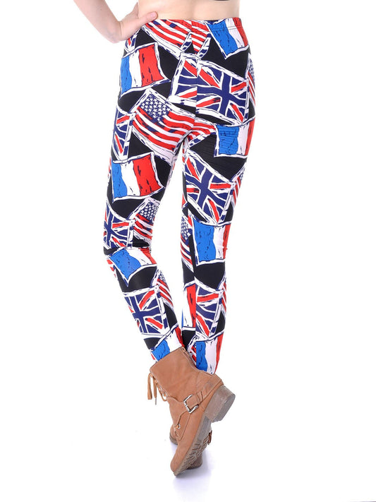 Leggings con diseño de boceto con banderas patrióticas en rojo, blanco y azul