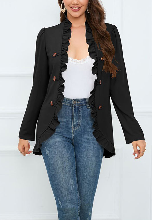 Abrigo con botones en contraste y ribete de volantesProveedor:Anna-KaciPrecio habitual $46.00Precio habitualPrecio unitario por-