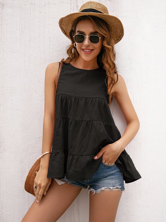 Blusa sin mangas con volantes y espalda abiertaProveedor:Anna-KaciPrecio habitual $33.00Precio habitualPrecio unitario por-