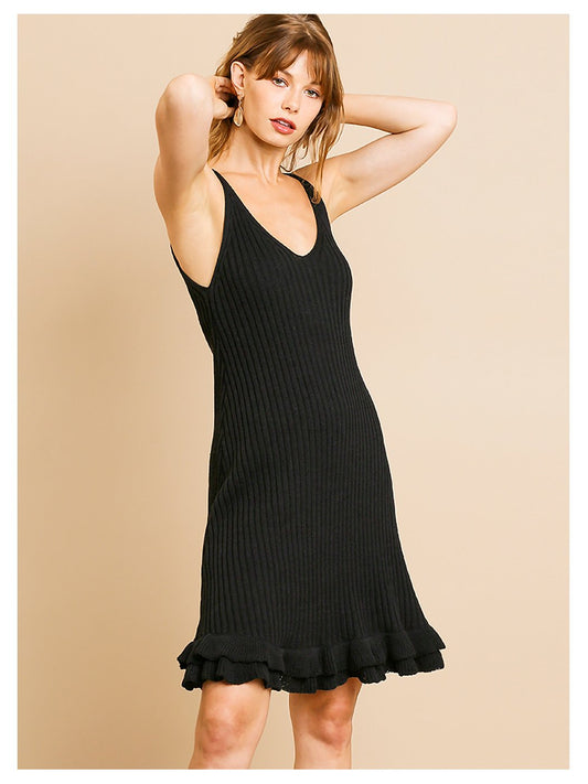 Sleeveless Knit Sweater Vest with Ruffle Trim