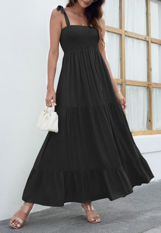 Vestido largo liso con lazo en los hombros