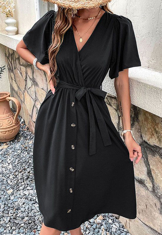 Vestido liso con escote cruzado y detalle de botones