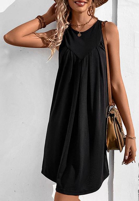 Vestido recto de cuello redondo liso