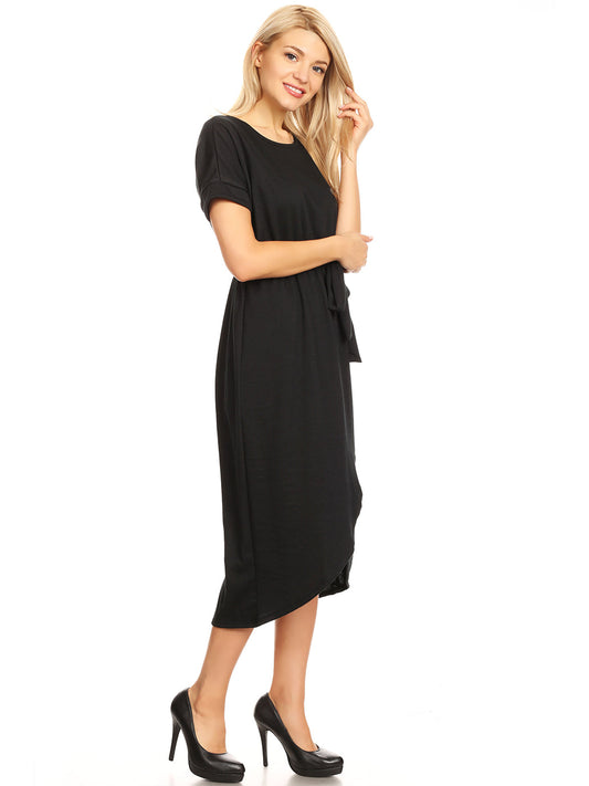 Vestido con cinturón de cinta lisa