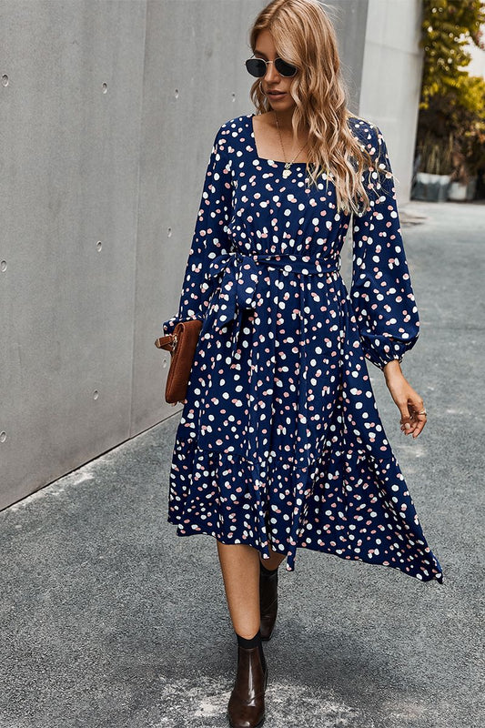 Vestido con estampado de leopardo y escote cuadrado en capas