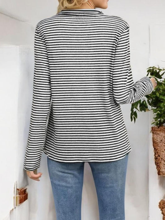 Striped Long Sleeve Top with Buttoned V-Neckline