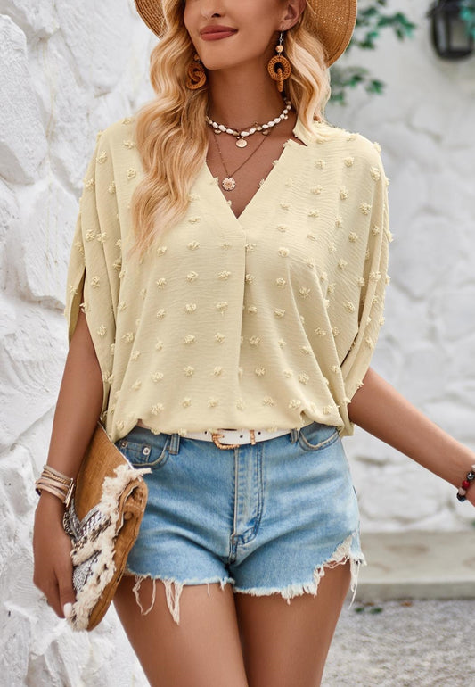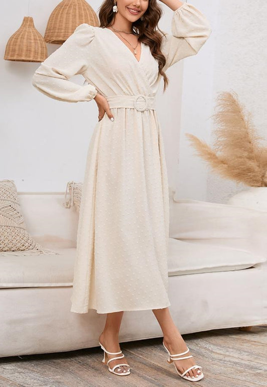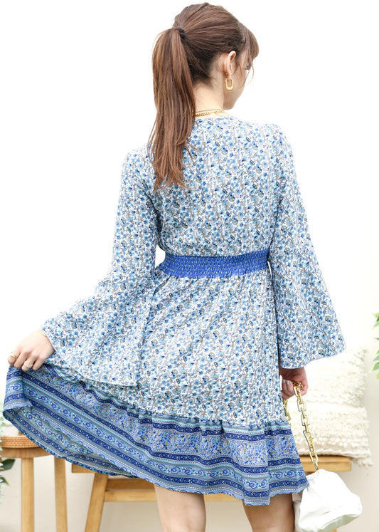 Vestido bohemio con cintura fruncida y sobrepelliz