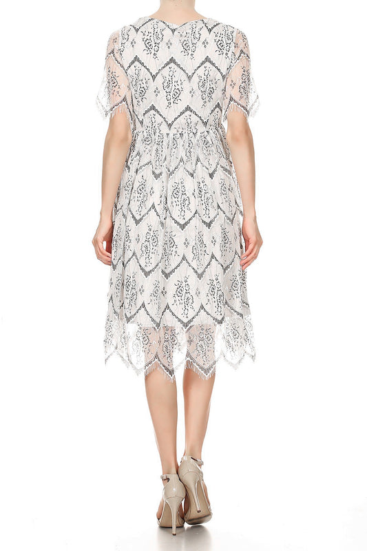 Vestido midi ligero con cremallera suave y encaje floral vintage