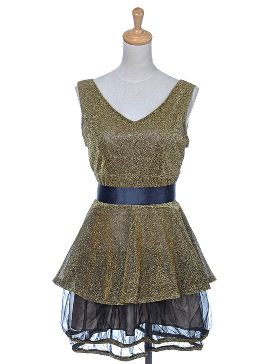 Vestido sin mangas con escote en V y cintura acampanada de tul con purpurina dorada para mujer