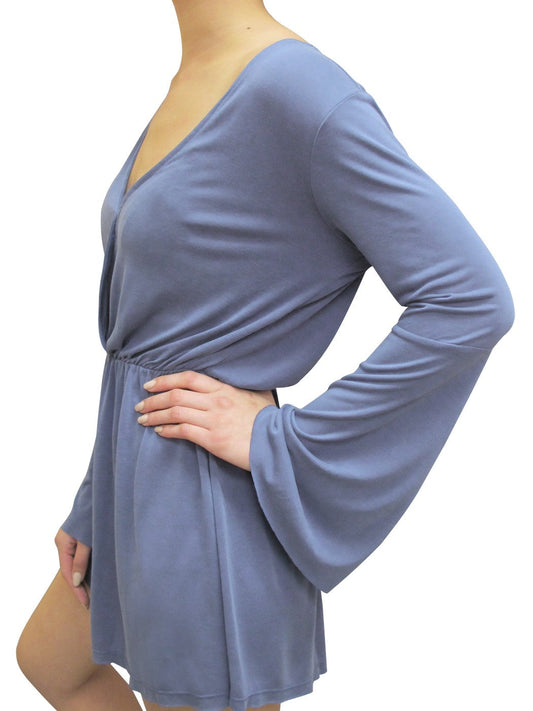 Mono corto informal elástico de manga larga con escote en V profundo y escote pronunciado para mujer