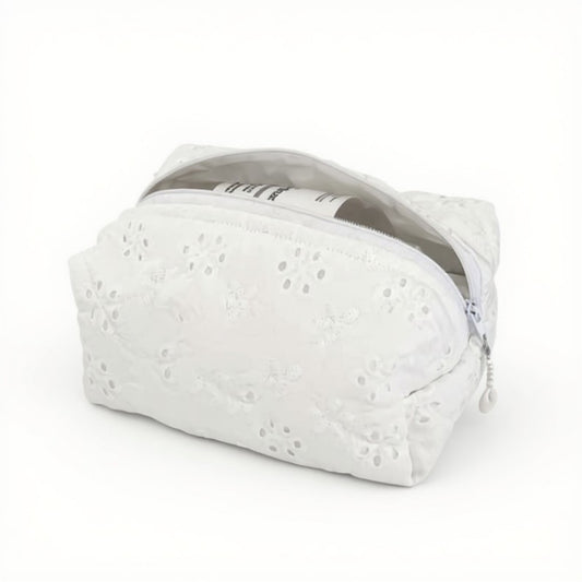 Anna-Kaci Embroidered Floral Quilted Cosmetic Bag with Zipper Closure 6x4x2in