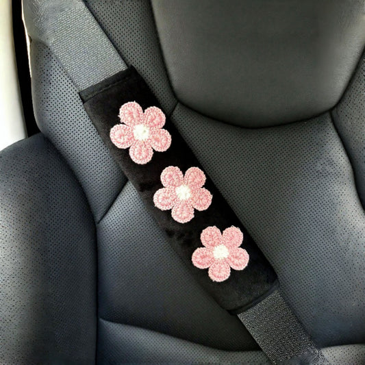 Anna-Kaci Floral Embroidered Seat Belt Covers Set with Soft Plush Padding