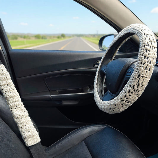 Anna-Kaci Handcrafted Crochet Steering Wheel Cover and Seat Belt Pad Set