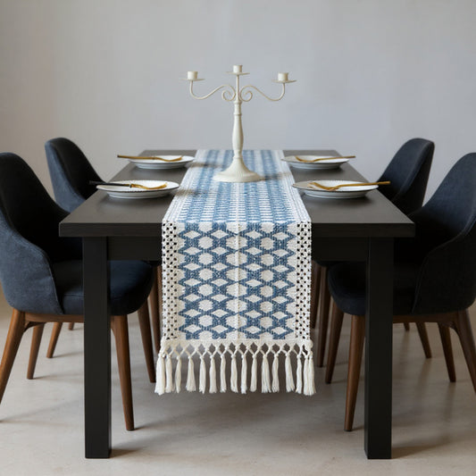Anna-Kaci Geometric Woven Table Runner with Tassel Fringe Edges