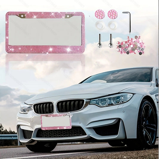 Anna-Kaci Rhinestone License Plate Frame 2-Piece Set Sparkling Crystal Car Accessory 12x6.5in