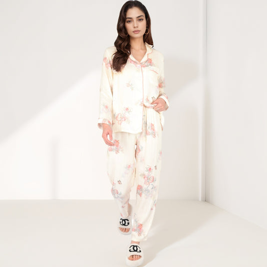 Anna-Kaci Women's Floral Print 2-Piece Pajama Set with Long Sleeve Button-Up Top and Relaxed Fit Pants