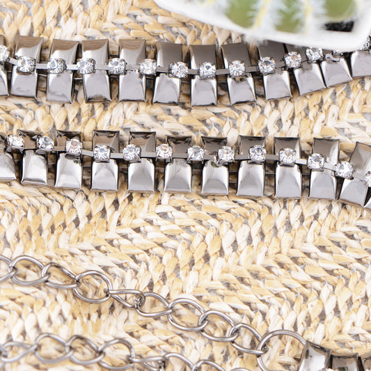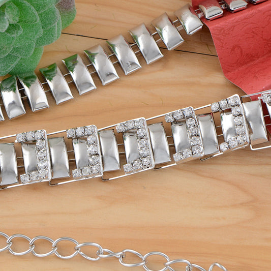 Anna-Kaci Women's Geometric Waist Chain with Square Link Design and Crystal Accents