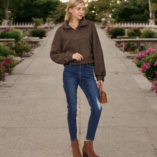 Anna-Kaci Women's High Pile Fleece Pullover with Half Zip Front and Long Sleeves