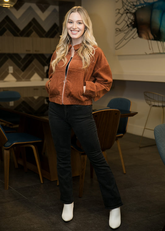 Chaqueta corta de pana de manga larga para mujer de Anna-Kaci