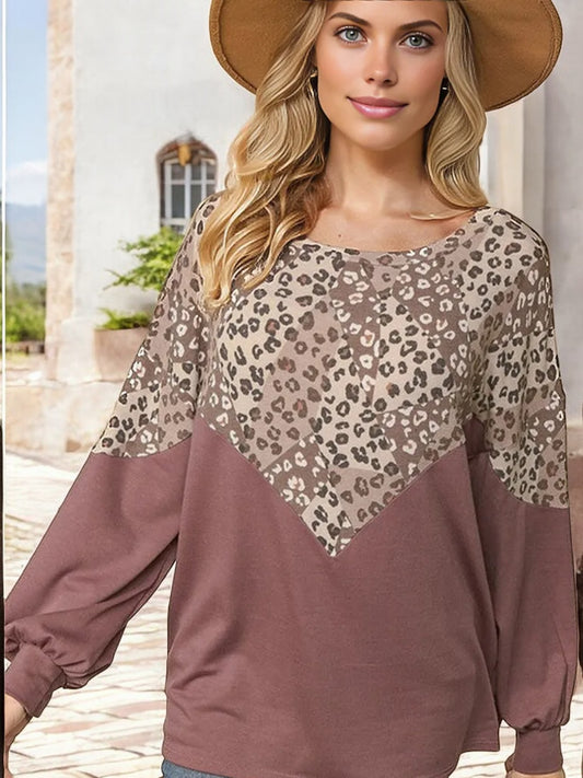 Suéter de punto con estampado de leopardo y manga larga para mujer de Anna-Kaci con ribete en contraste