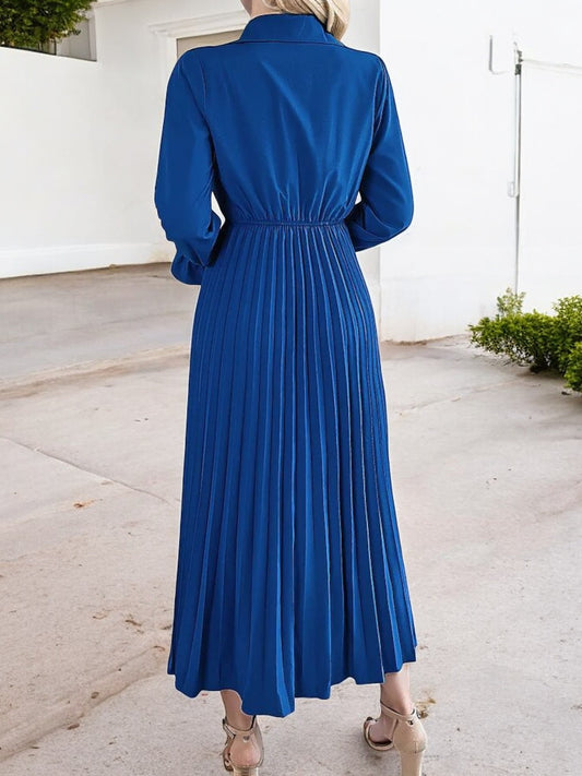 Anna-Kaci Women's Long Sleeve Pleated Maxi Dress with Fitted Bodice and Flowing Skirt