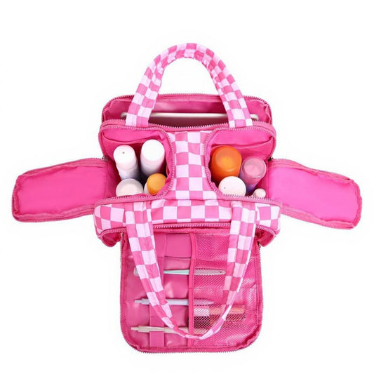 Anna-Kaci Checkered Makeup Brush Storage Bag with Zipper Compartments and Carry Handles