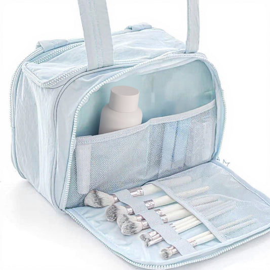 Anna-Kaci Multi-Compartment Travel Makeup Bag with Wide Opening and Carry Handle