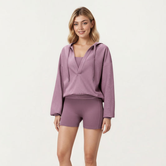 Anna-Kaci Active Women's Waffle Knit Long Sleeve Active Hoodie Top with Deep V-Neckline Relaxed Fit and Soft Stretch Texture for Everyday Comfort
