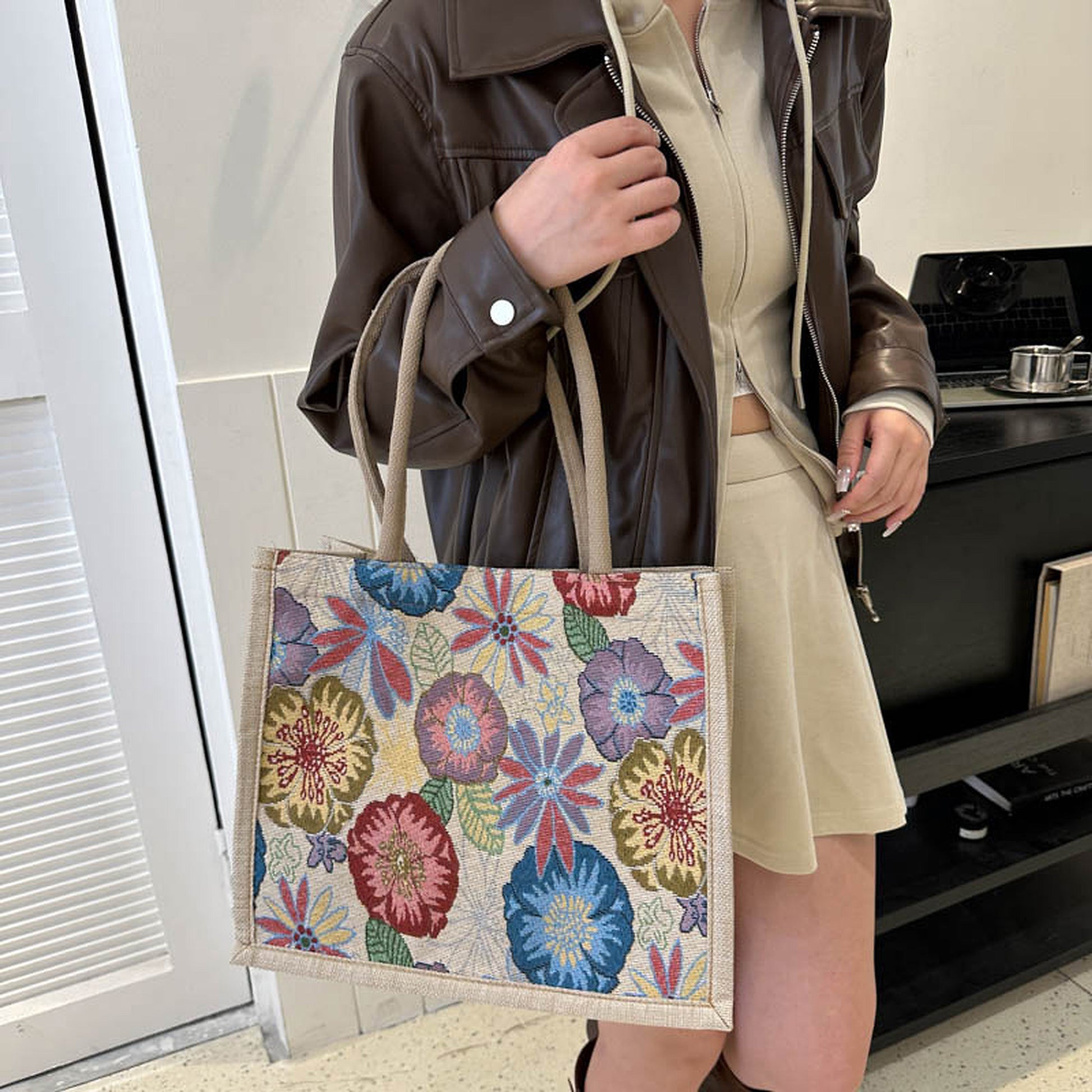 Anna-Kaci Women's Floral Sackcloth Tote Bag-Lightweight Handbag