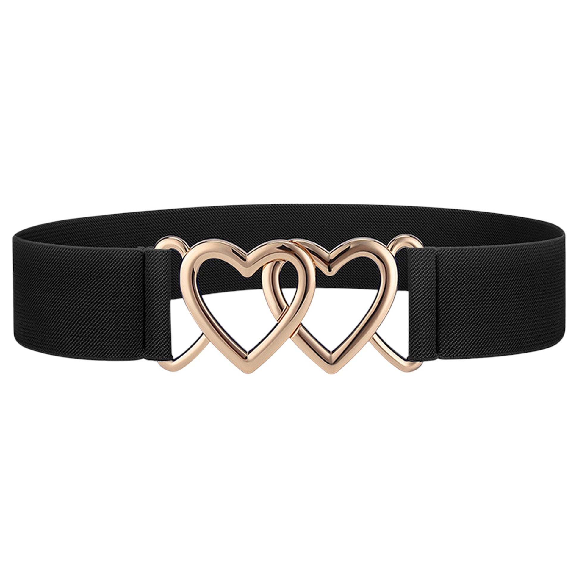 Add a touch of romance and style to your outfits with our Women's Elastic Waist Belt featuring a beautiful gold heart buckle. This belt is designed to effortlessly elevate your look, whether you're dressing up for a special occasion or adding a chic accent to everyday wear. The interlocking gold hearts on the buckle bring a sweet, feminine charm, making it a standout accessory.