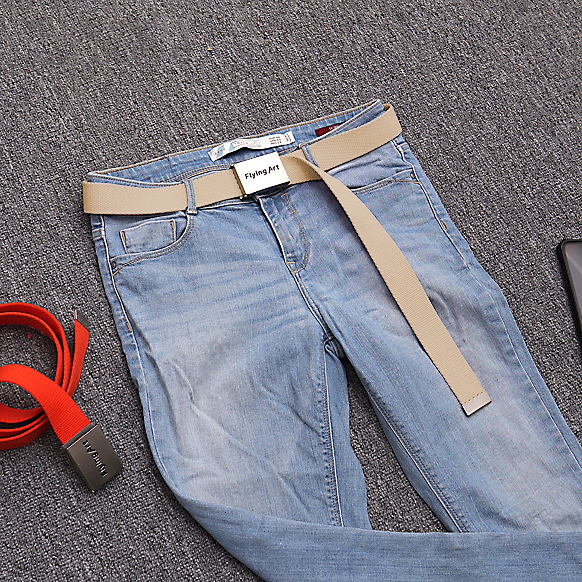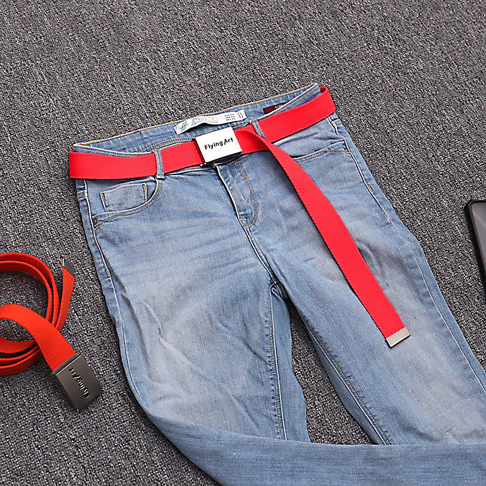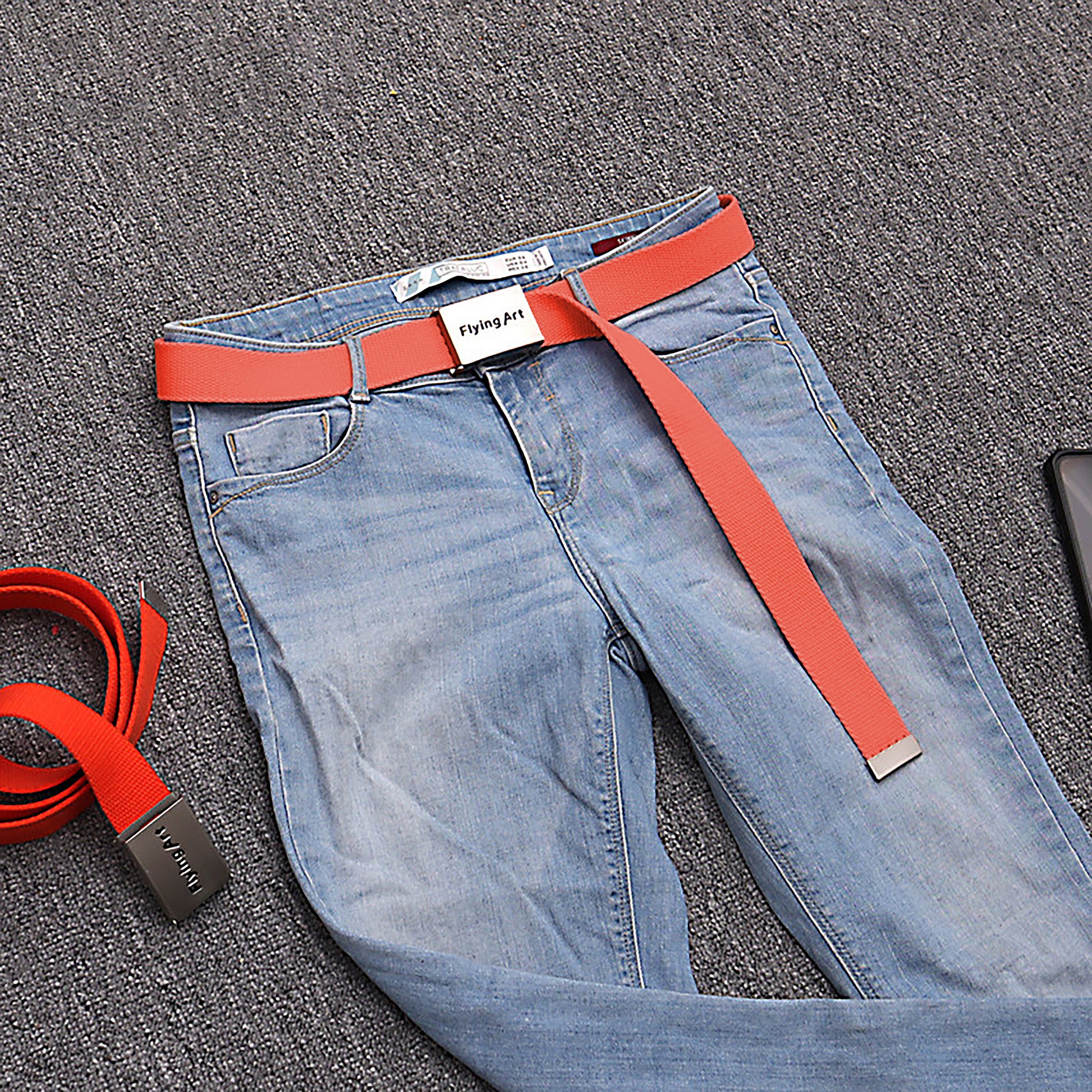 Elevate your casual style with our Women's Canvas Waist Belt, highlighted by the distinctive metal buckle. This belt seamlessly blends fashion and functionality, crafted from durable canvas that can withstand daily wear, making it a reliable choice for everyday outfits or light outdoor adventures. The silver metal buckle adds a touch of trendy branding, setting it apart as a stylish accessory