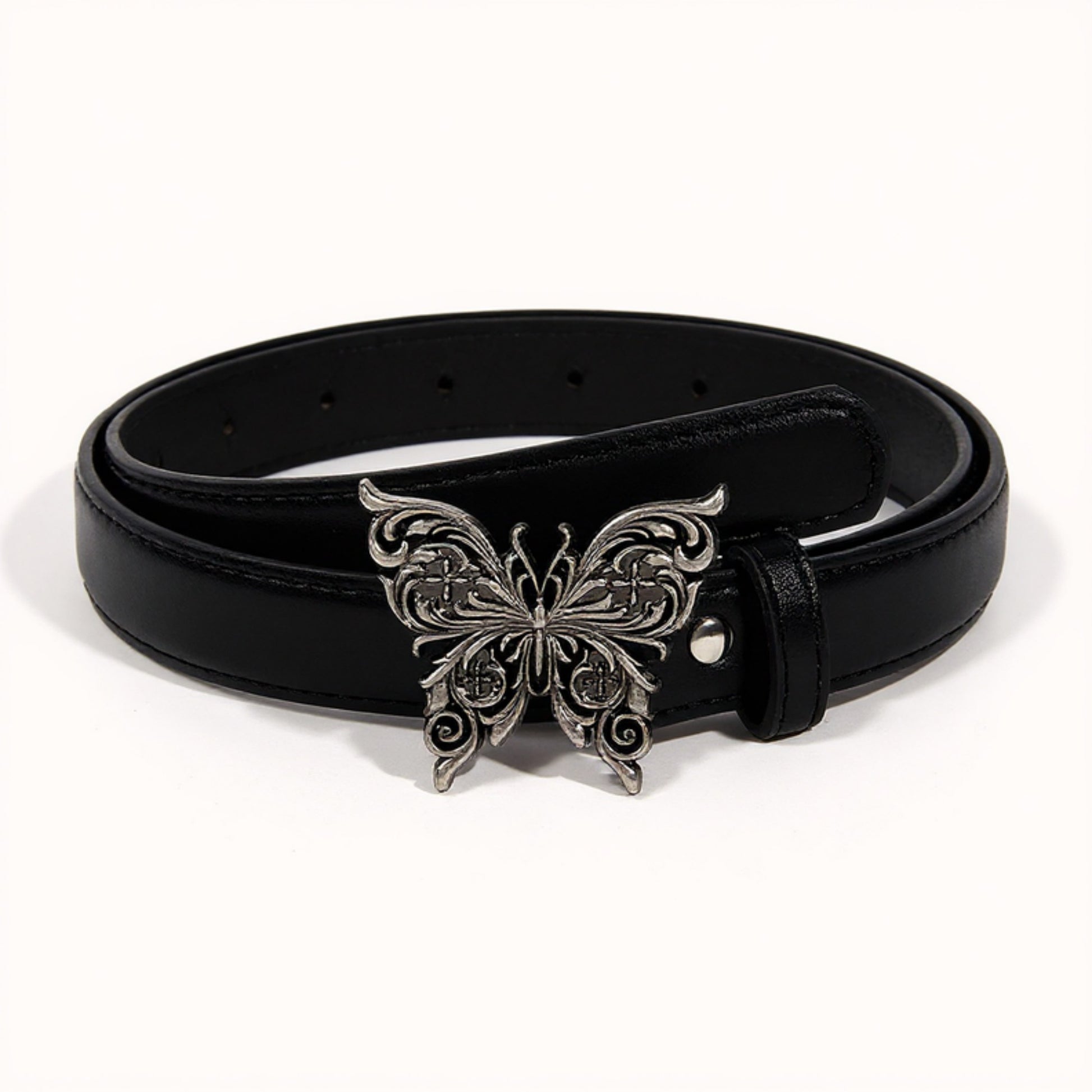 The Anna-Kaci Women's Butterfly Buckle Belt with Textured Strap and Metal Detailing combines edgy elegance with timeless femininity. Featuring an intricately designed butterfly buckle, this belt adds a whimsical yet bold statement to any outfit. The smooth, durable strap ensures a comfortable fit that pairs effortlessly with jeans, skirts, or dresses. Designed for both casual and chic looks, this belt offers a perfect blend of vintage-inspired charm and modern appeal.