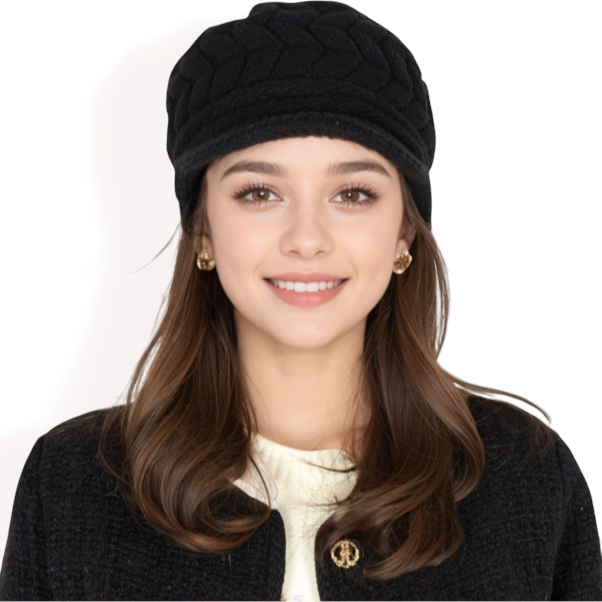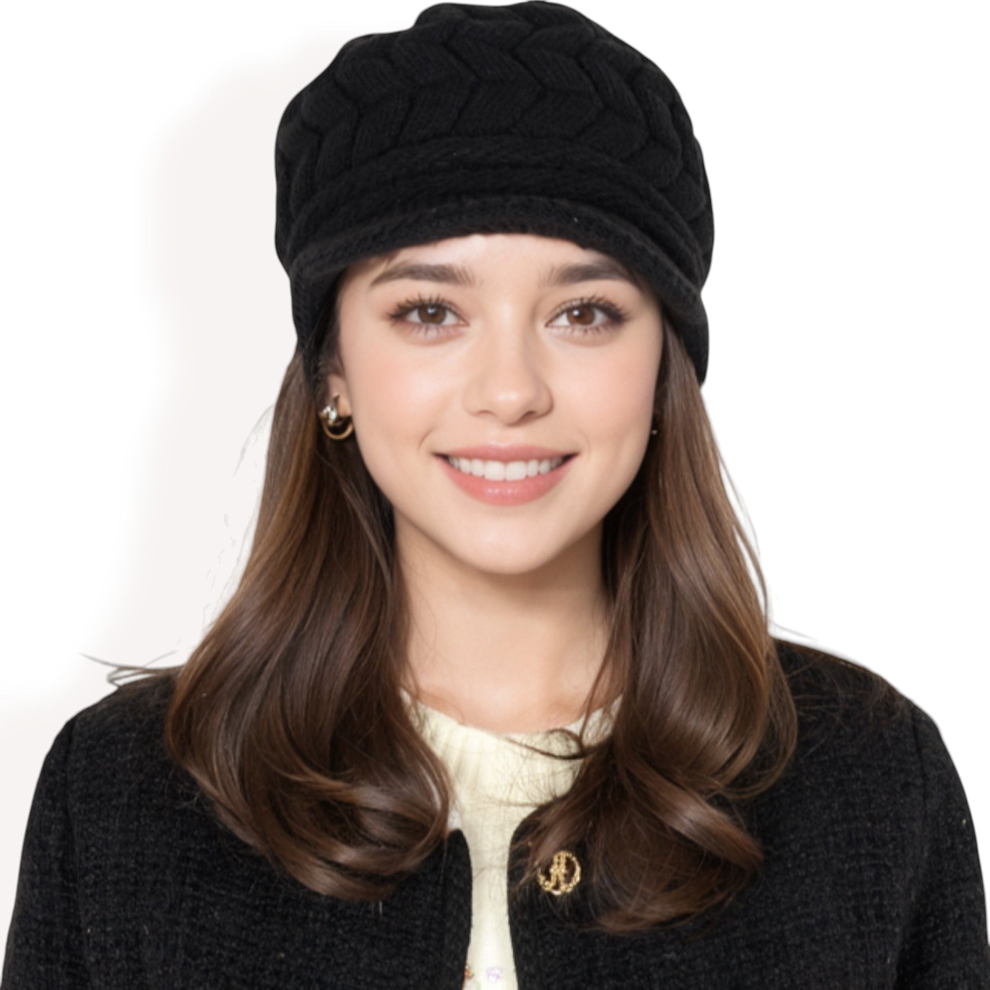 Add a touch of chic style to your wardrobe with this Women's Knitted Newsboy Cap. Crafted with a soft, breathable knit fabric, it features an intricate braided cable pattern that adds texture and visual interest. The stylish brim offers a flattering shape while providing a hint of shade and protection from the sun. Designed with comfort in mind, this hat is lightweight, stretchable, and perfect for all-day wear. Whether you're running errands or meeting friends, this versatile cap is a fashionable and functional accessory that complements both casual and semi-formal outfits. Elevate your cold-weather look with this timeless, cozy piece that pairs effortlessly with your wardrobe staples.