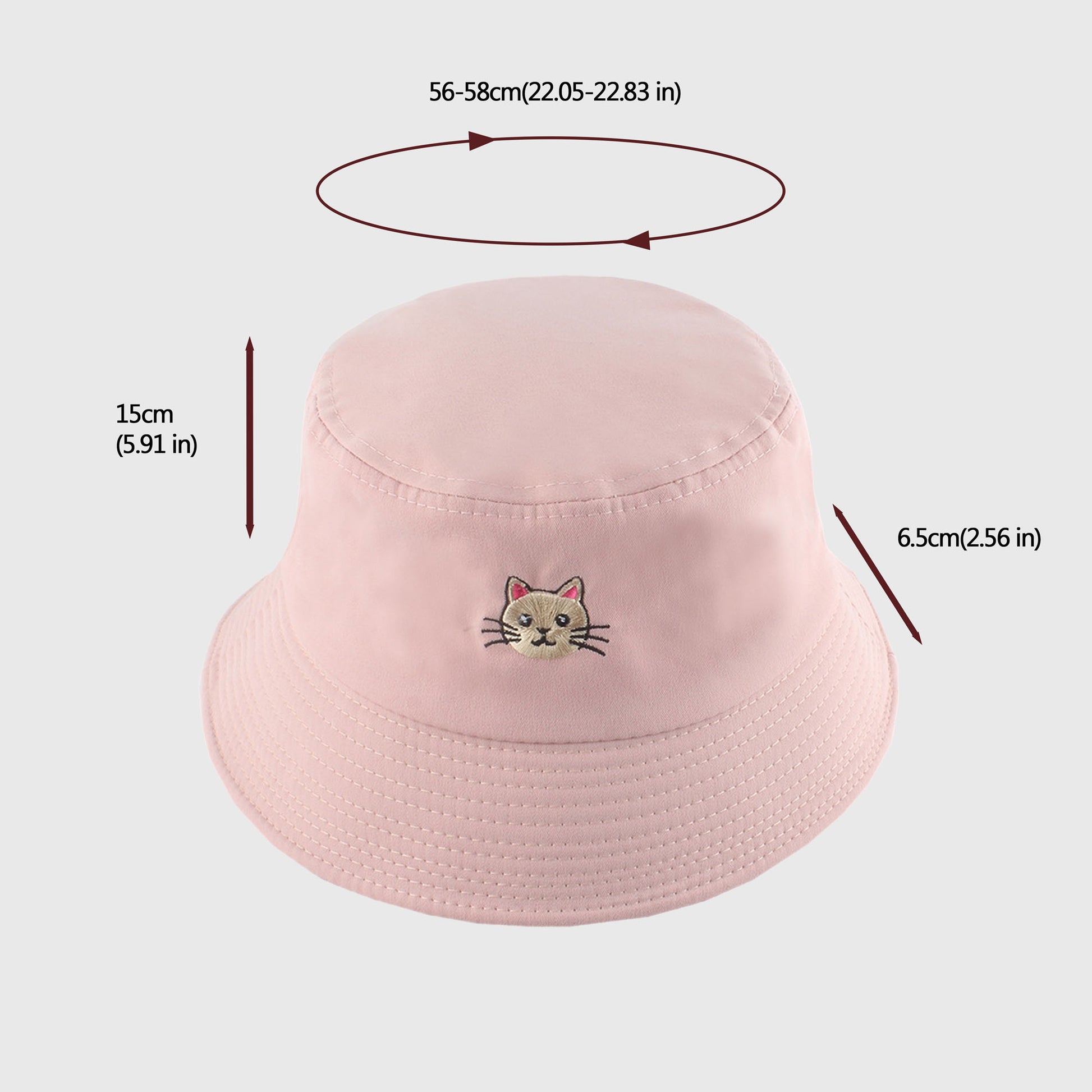 Add a dose of cuteness to your accessory collection with our Women's Bucket Hat featuring an adorable cat embroidery. This hat is perfect for cat lovers and anyone who wants to infuse a playful vibe into their look. The detailed cat face design stands out beautifully against the soft pink fabric, making it a charming addition to any outfit.
