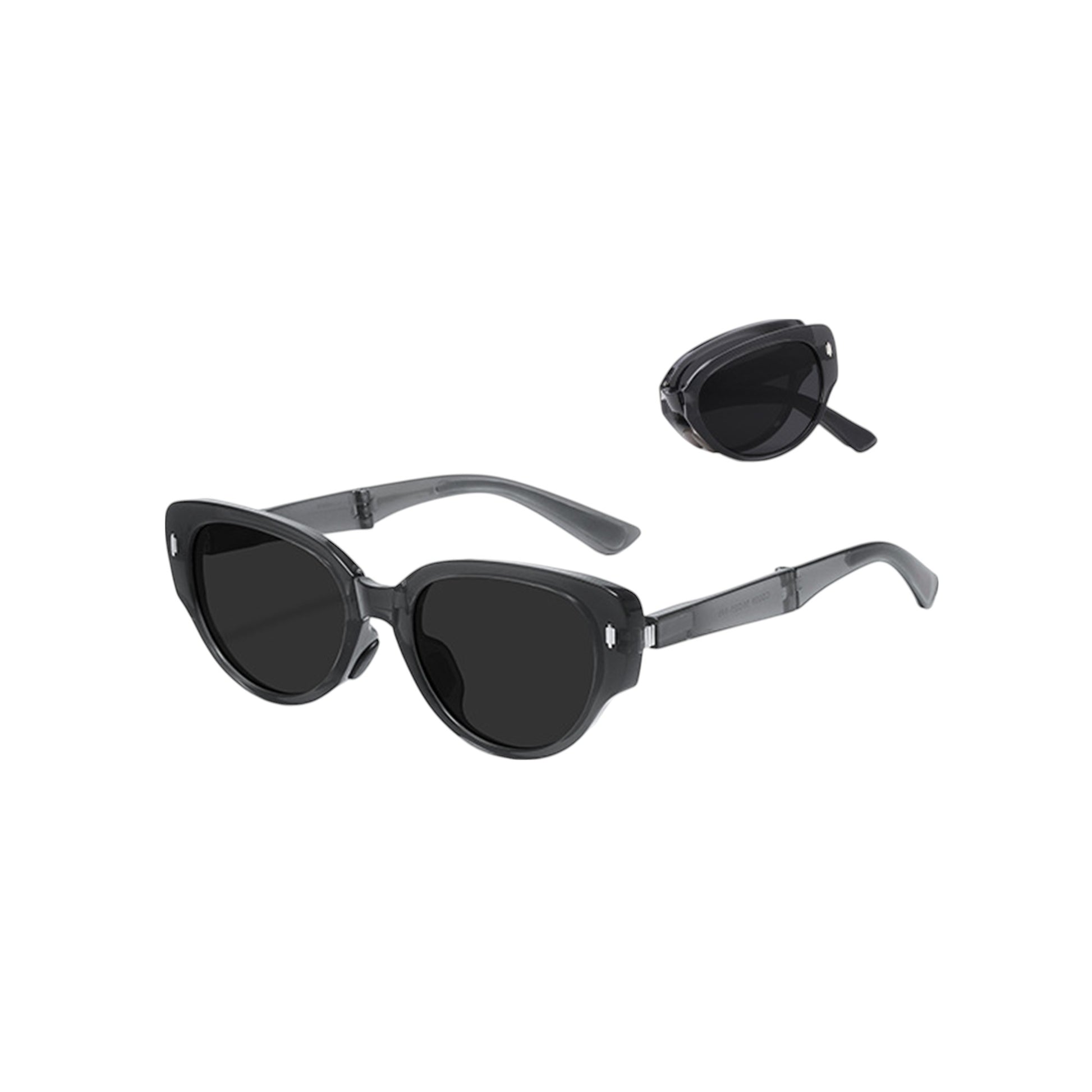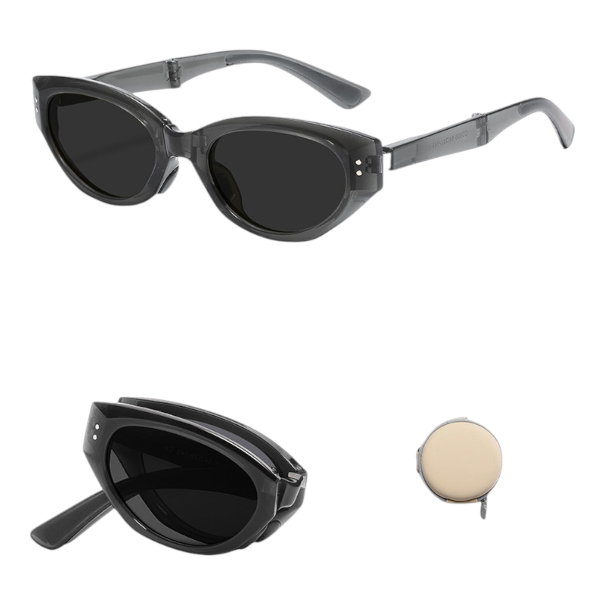 The AnnaKaci Women's Foldable Cat Eye Sunglasses blend fashion and function in a spacesaving design. Featuring a sleek cateye silhouette, these sunglasses fold down neatly into a compact round storage case, making them ideal for onthego lifestyles. The durable frame offers UV protection while maintaining a chic, timeless shape. Perfect for handbags, glove compartments, or travel kits, these foldable shades keep you stylish and prepared wherever you go.