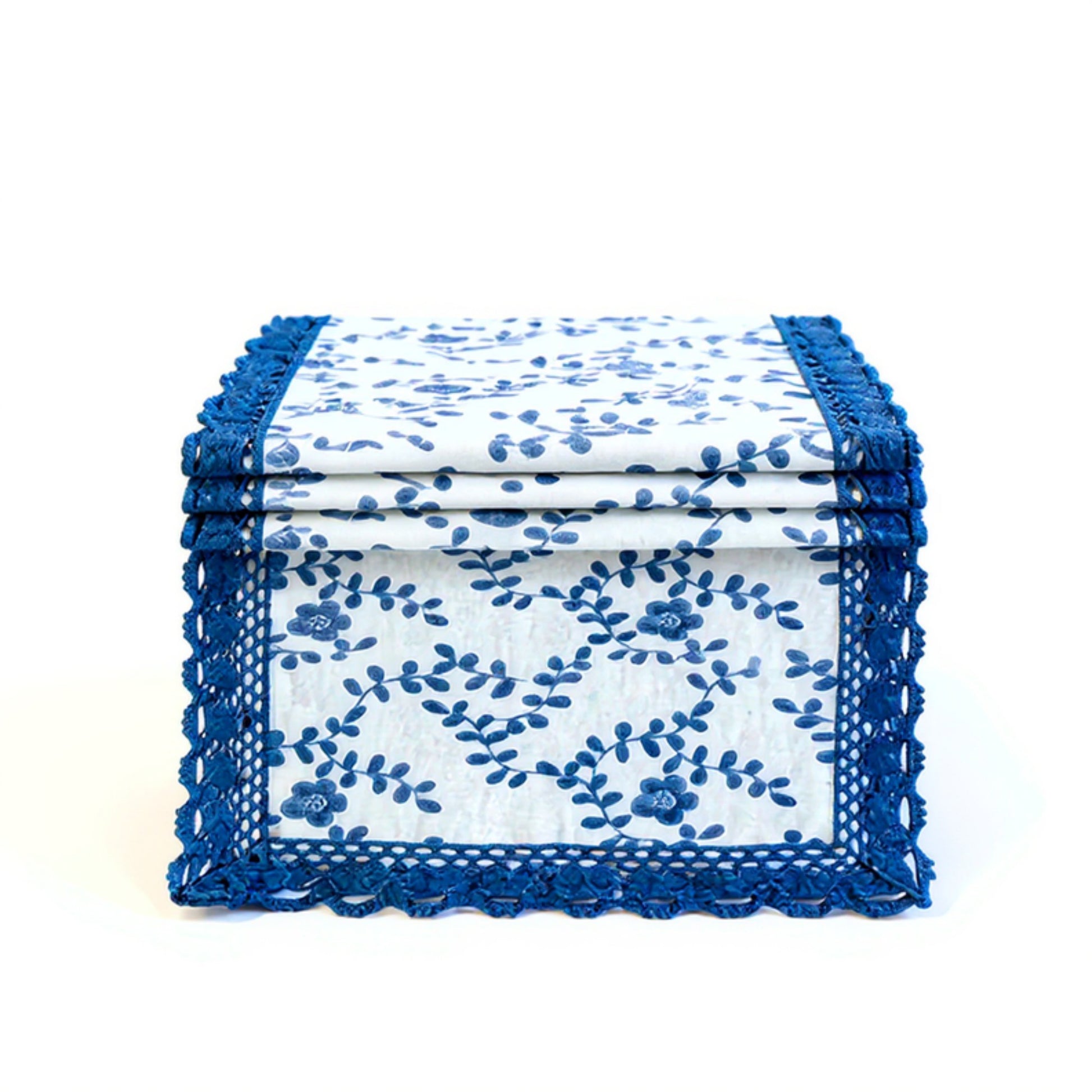 Anna-Kaci Floral Embroidered Table Runner with Crocheted Lace Edges