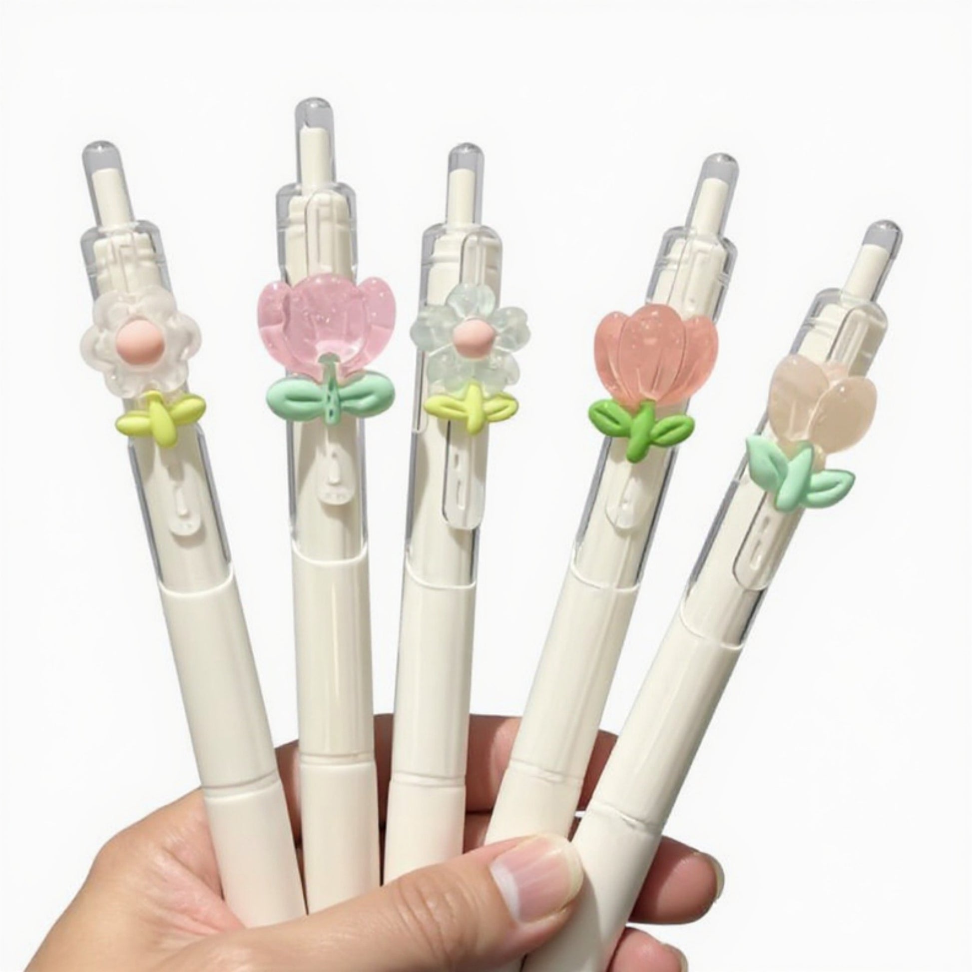 Anna-Kaci Set of 5 Retractable Gel Pens with Cute Flower Clip Designs