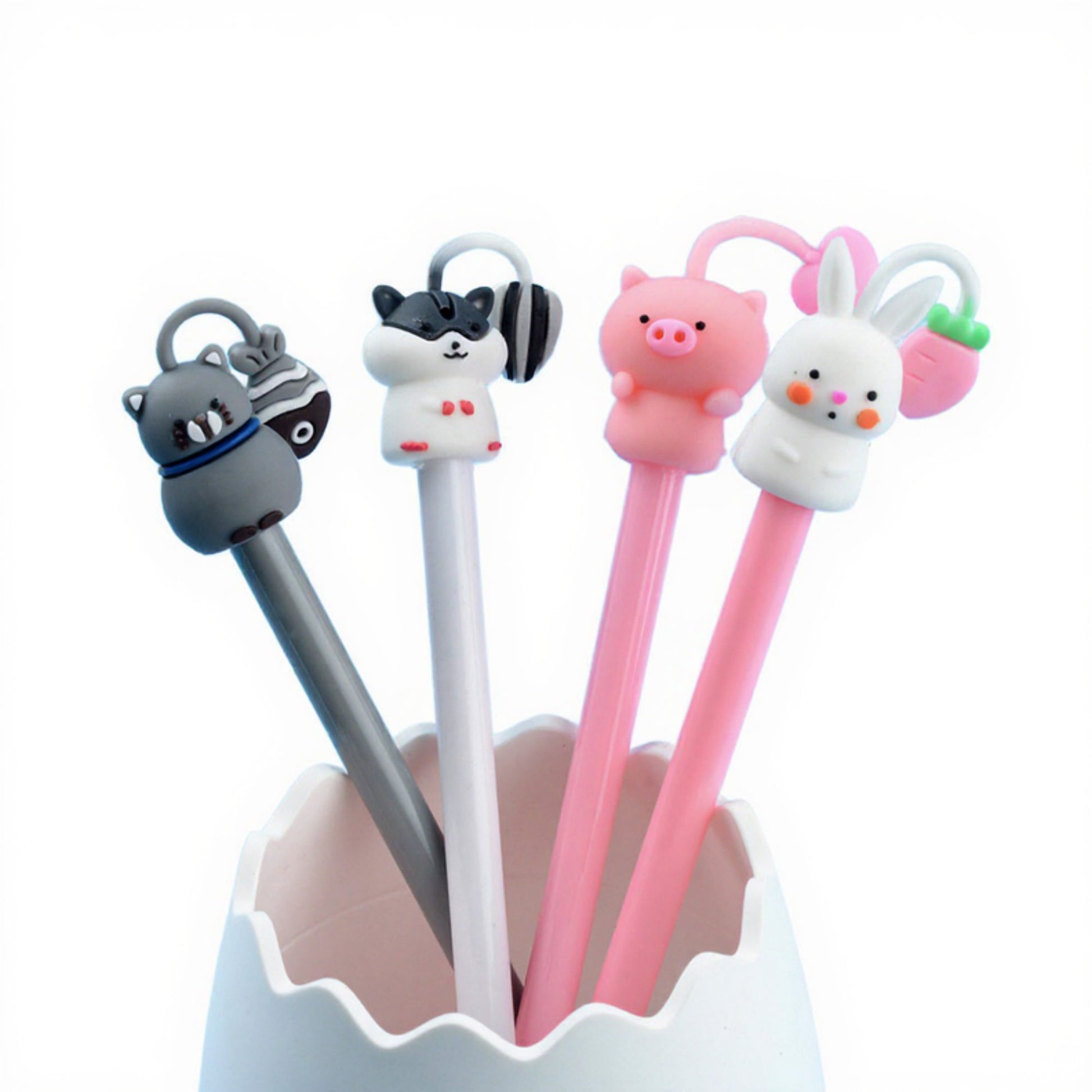 The Anna-Kaci Set of 4 Cute Animal Gel Ink Pens adds a fun and whimsical touch to your writing essentials. Each pen features a unique 3D animal topper, including a cat, bunny, pig, bear, and cow, designed to bring joy to your daily notes or journaling. The smooth-flowing gel ink ensures effortless writing with clean, consistent lines. Perfect for school, work, or creative projects, these pens also make delightful gifts for stationery lovers who enjoy adding personality to their desk.
