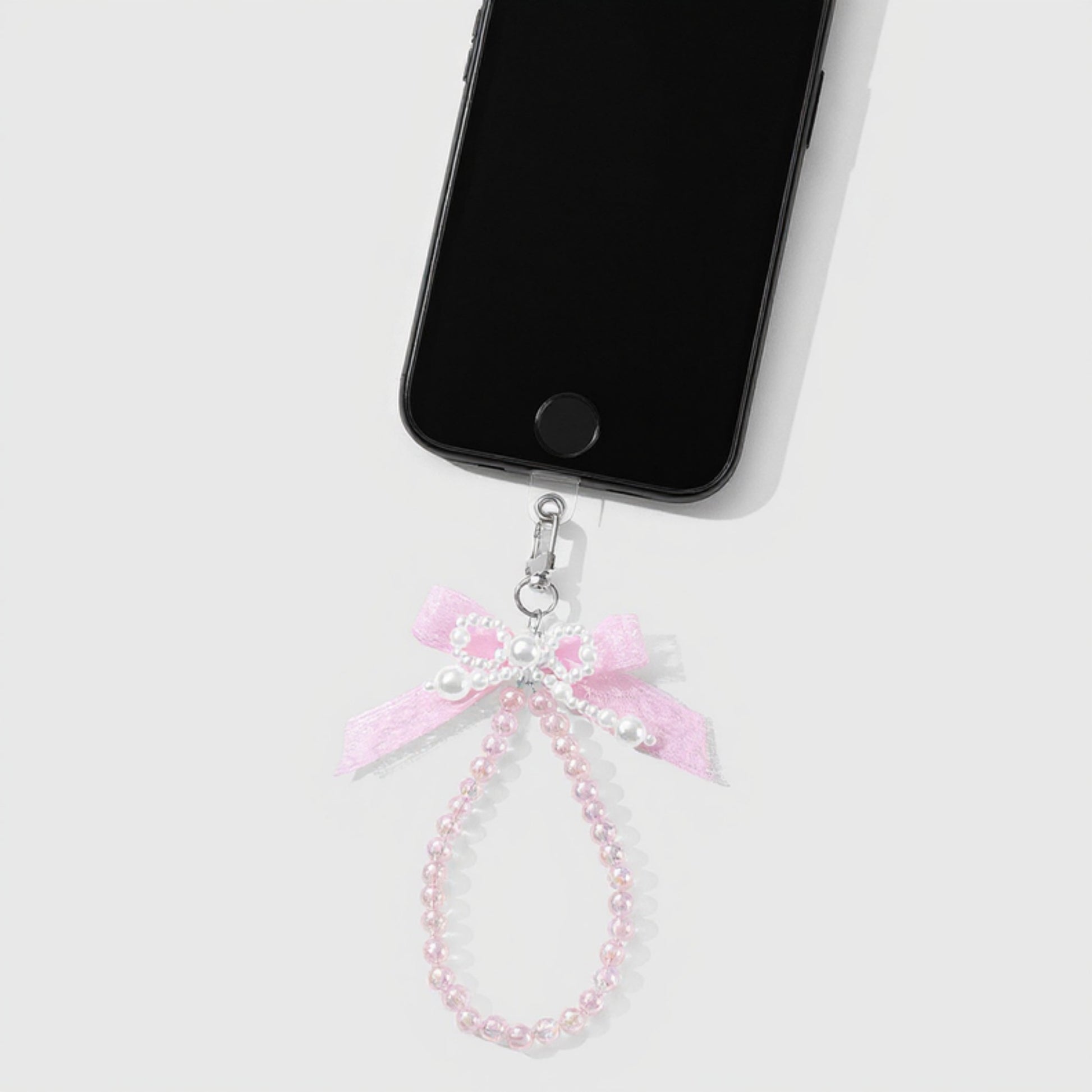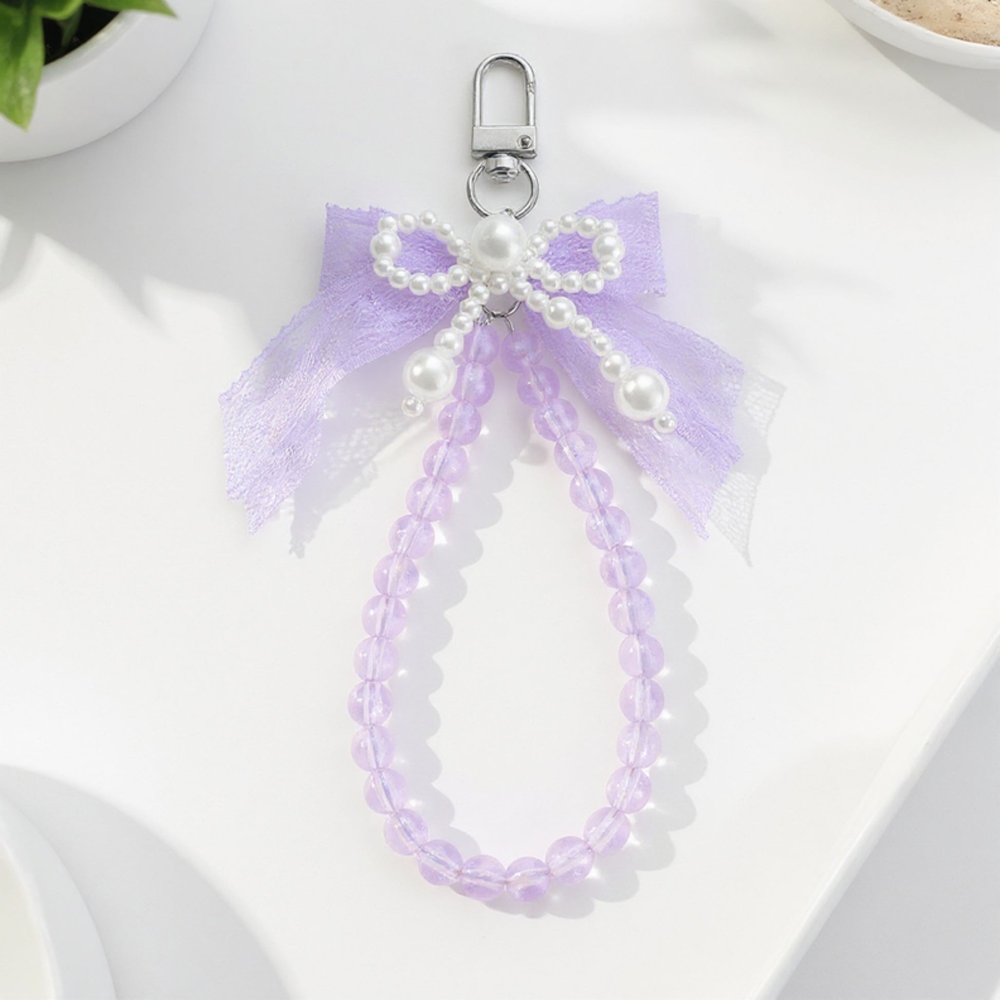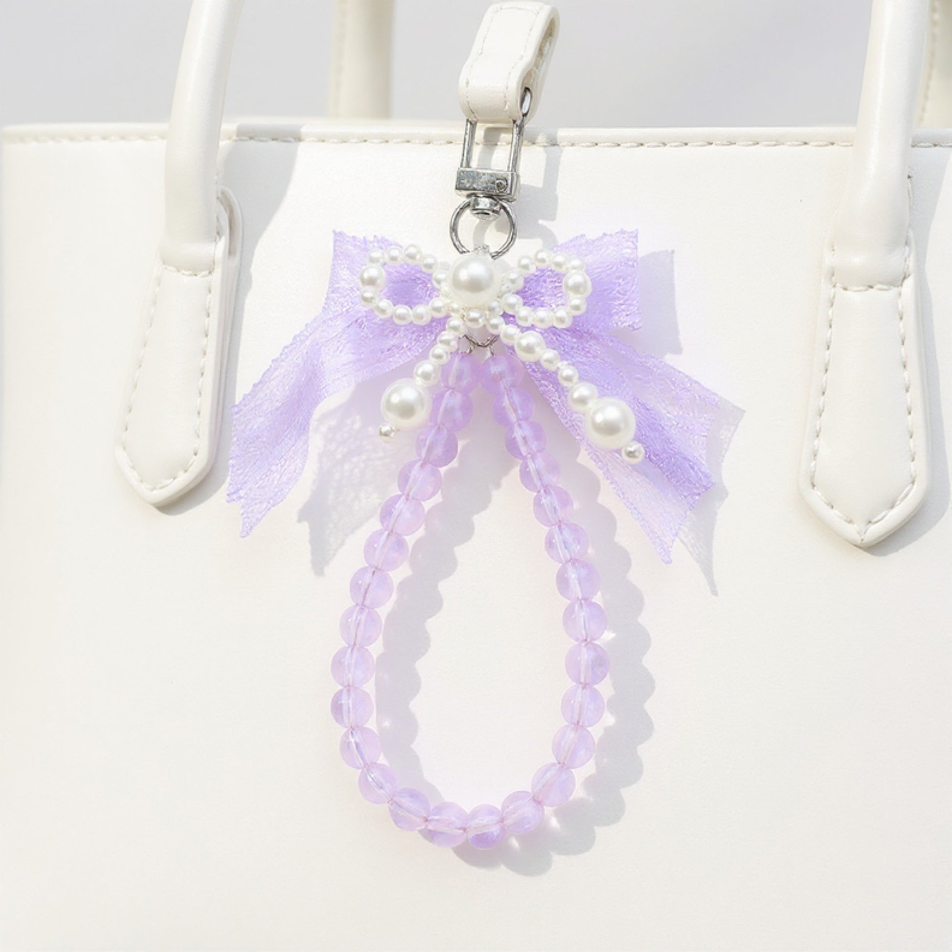 Anna-Kaci Beaded Keychain with Lace Bow and Pearl Accents