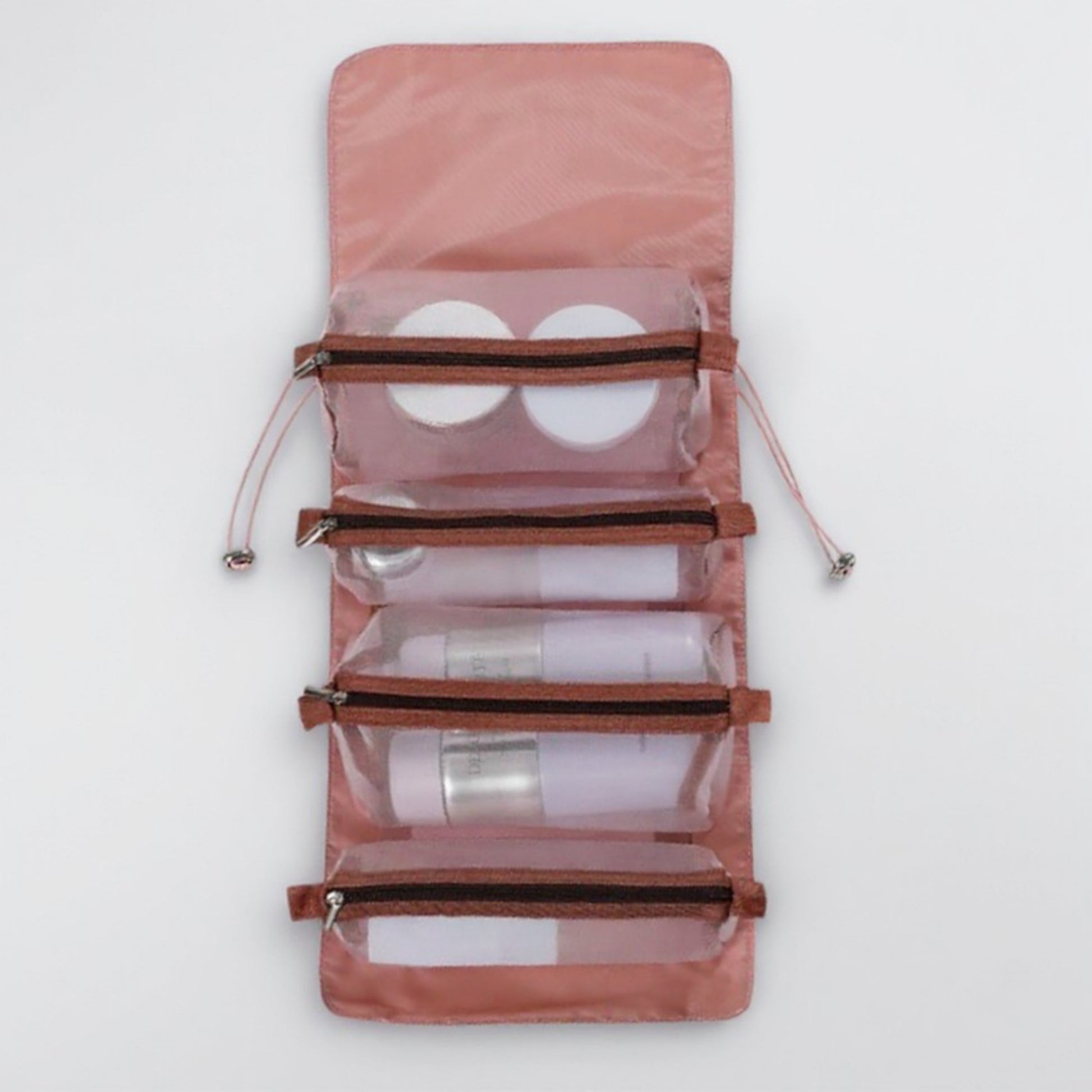 The Anna-Kaci Foldable Travel Toiletry Bag with Multiple Clear Zip Compartments and Hanging Design keeps your skincare and cosmetic essentials neatly organized while traveling. Featuring four transparent zippered sections, it allows for easy visibility and quick access to your items. The foldable design makes it compact for packing, while the built-in hanging strap ensures convenient use in bathrooms or hotel rooms. Stylish and functional, this travel essential is perfect for keeping your routine organized on the go.