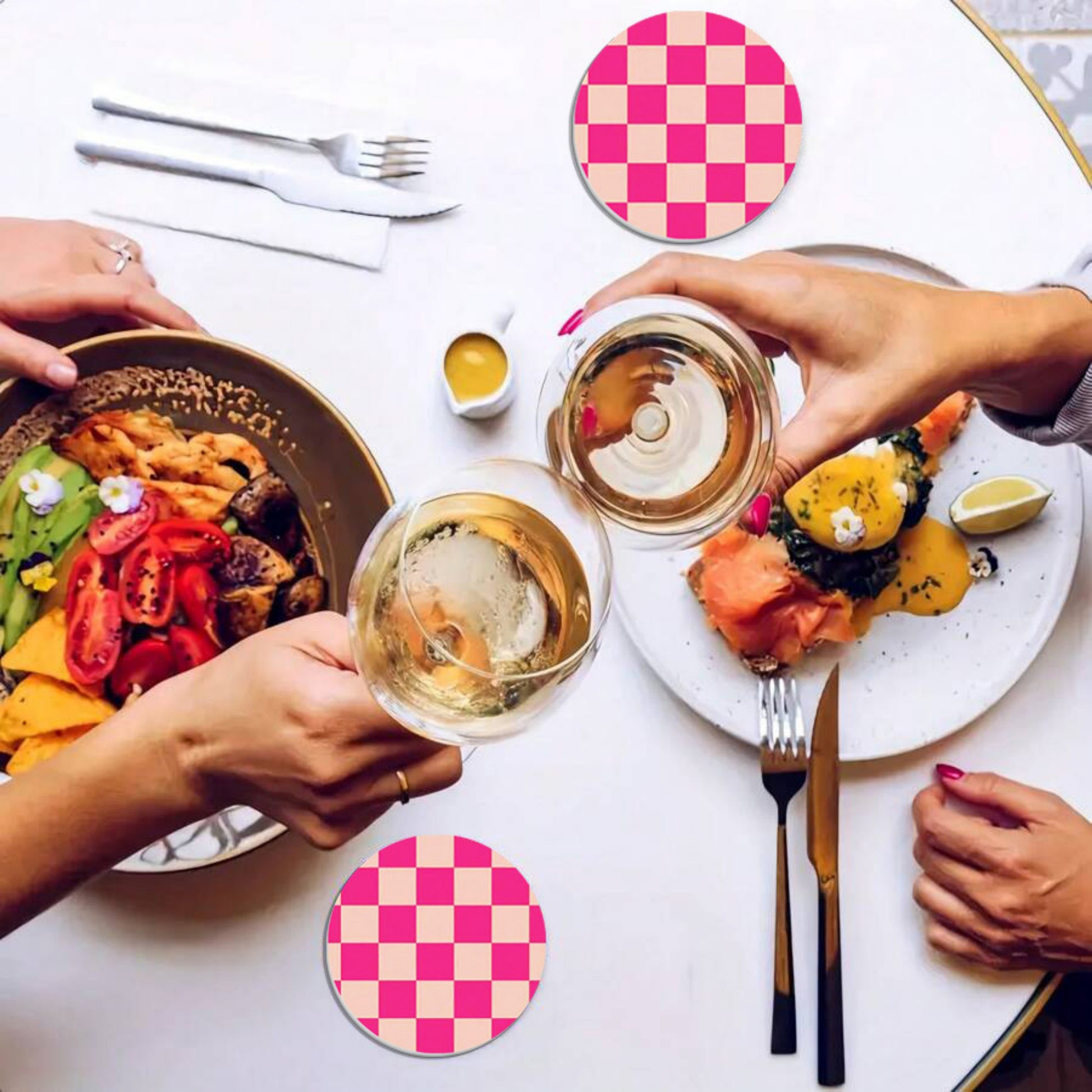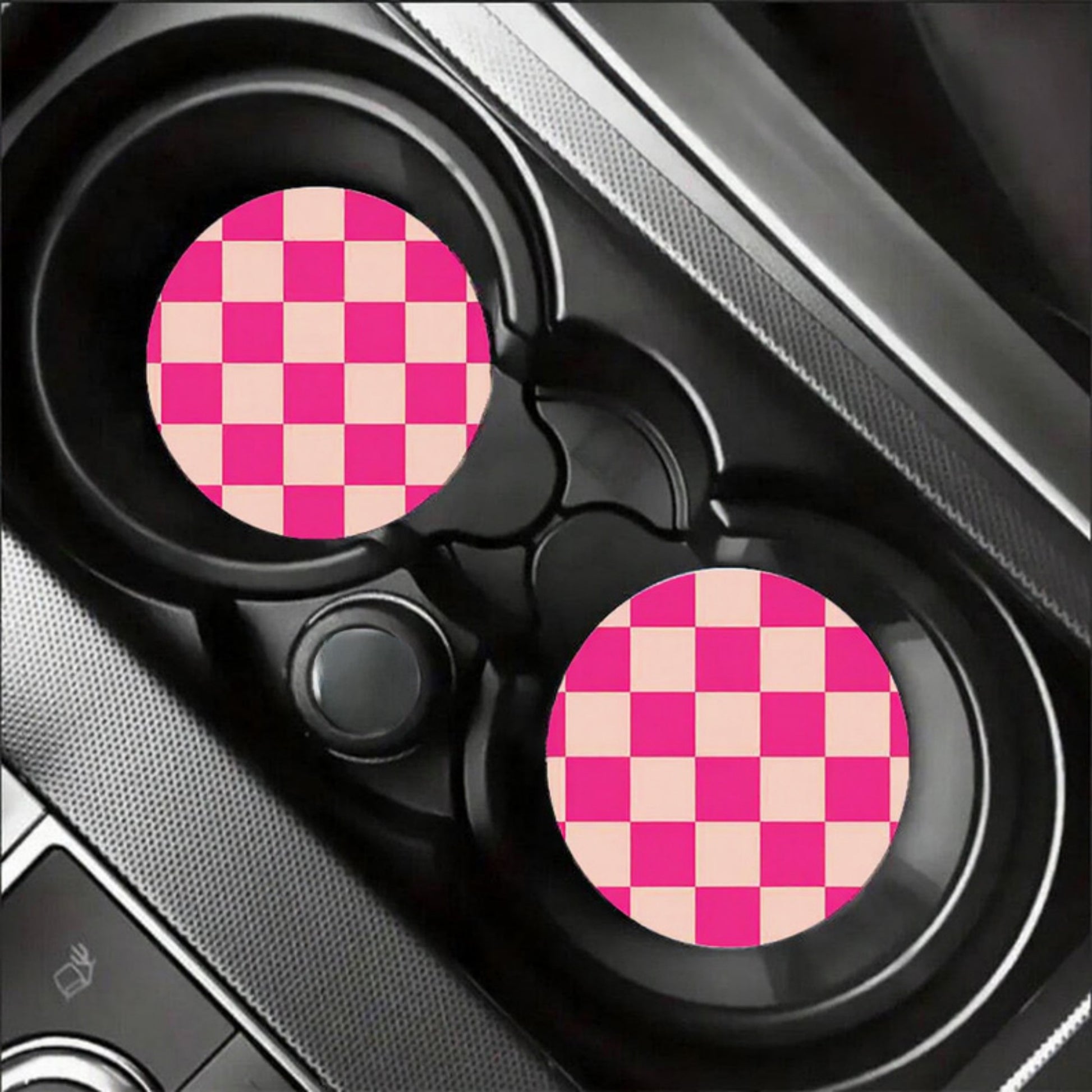 Anna-Kaci Checkered Car Cup Holder Coasters Anti-Slip Absorbent Mats Set of 2