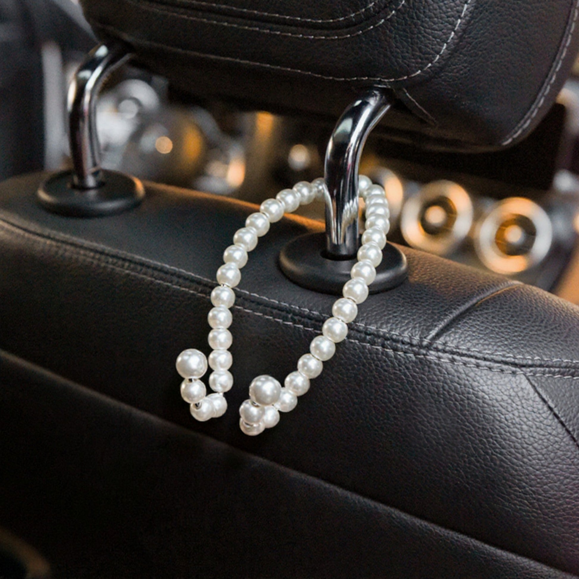 The Anna-Kaci Pearl Beaded Car Headrest Hook adds a touch of elegance and practicality to your vehicle. Designed with lustrous faux pearls, this hook easily attaches to the car¡¯s headrest poles to hold handbags, groceries, or accessories securely. Its flexible and durable construction prevents items from rolling or falling during drives while maintaining a chic decorative look. Perfect for keeping your car organized with a fashionable twist, it blends style and function effortlessly.