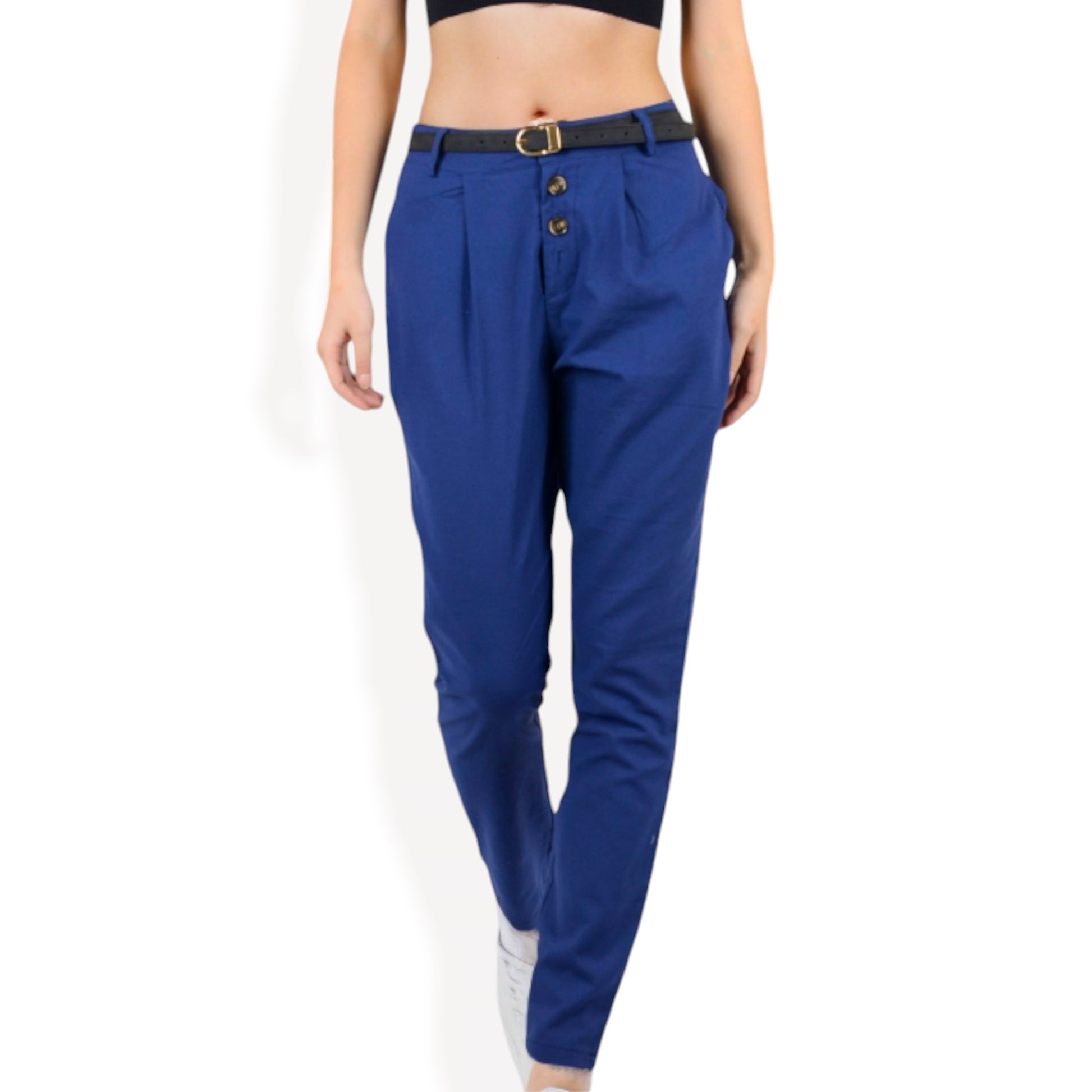 Anna-Kaci Women's High Waist Button Front Tapered Pants with Side Pockets