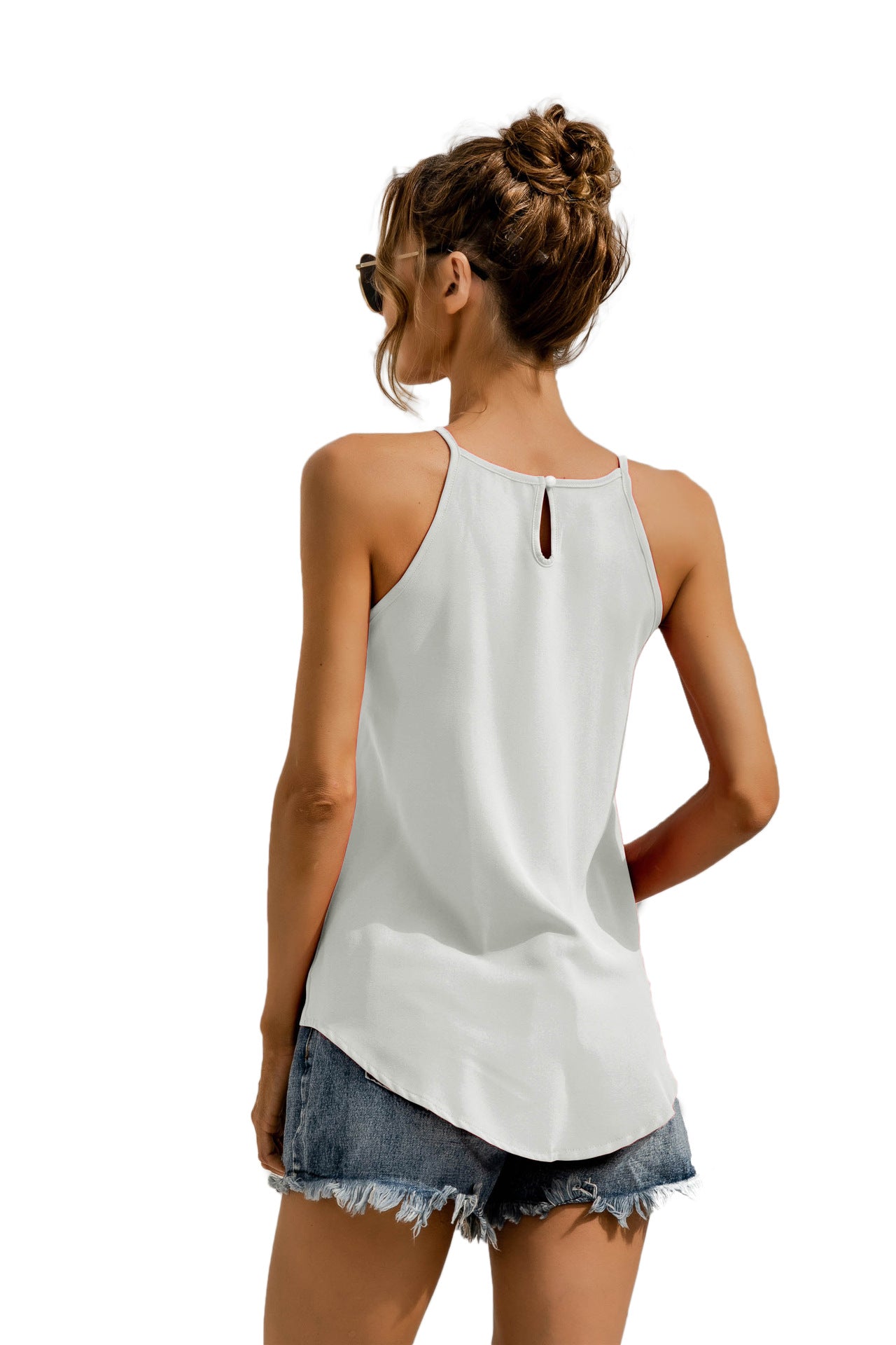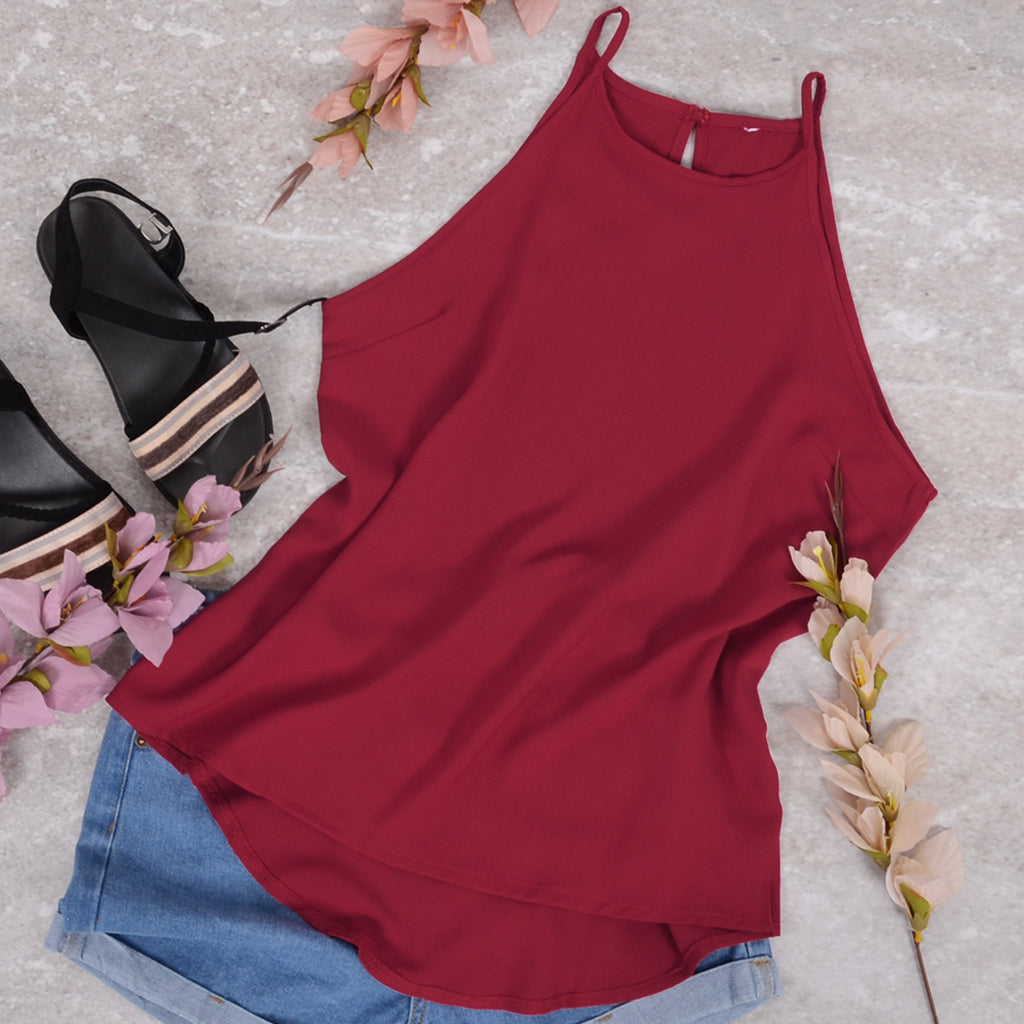 La blusa ligera Anna-Kaci tiene un escote halter sencillo que resalta y define tus hombros. Tiene una espalda con abertura, un color liso y un corte relajado. Combínala con shorts de mezclilla y anteojos de sol para lograr el look de verano perfecto.